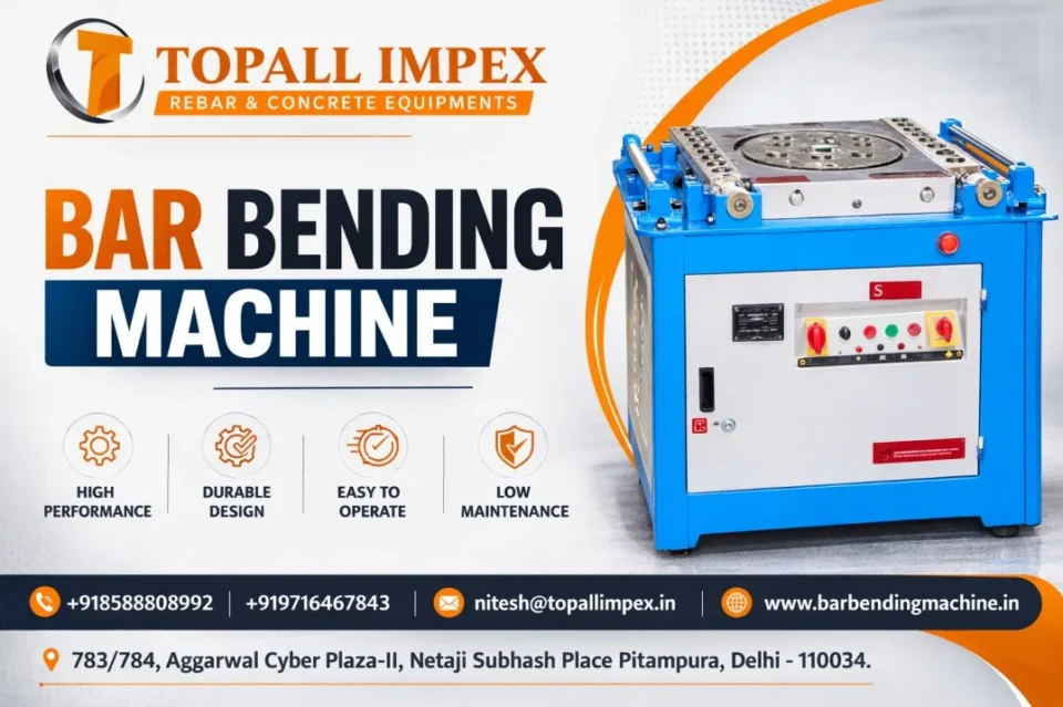 Companies like Topall Impex manufacture advanced bar bending machines that are widely used across construction sites in India.